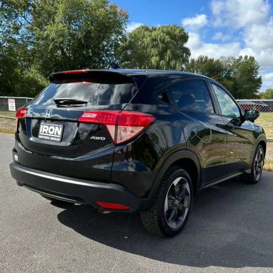 2018 Honda HR-V, 4-cilindros I-VTEC, automático, 142,000 mi. Interior confortável com bancos aquecidos, ar-condicionado, teto solar e volante ajustável. Equipado com airbags frontais, laterais e cortina, ABS, controle de tração e estabilidade, hill start assist e Honda LaneWatch. Recursos tecnológicos incluem câmera de ré, Bluetooth, AM/FM, CD/MP3 e HondaLink. Conforto e conveniência com keyless entry, vidros e travas elétricos, spoiler traseiro e controle de cruzeiro.