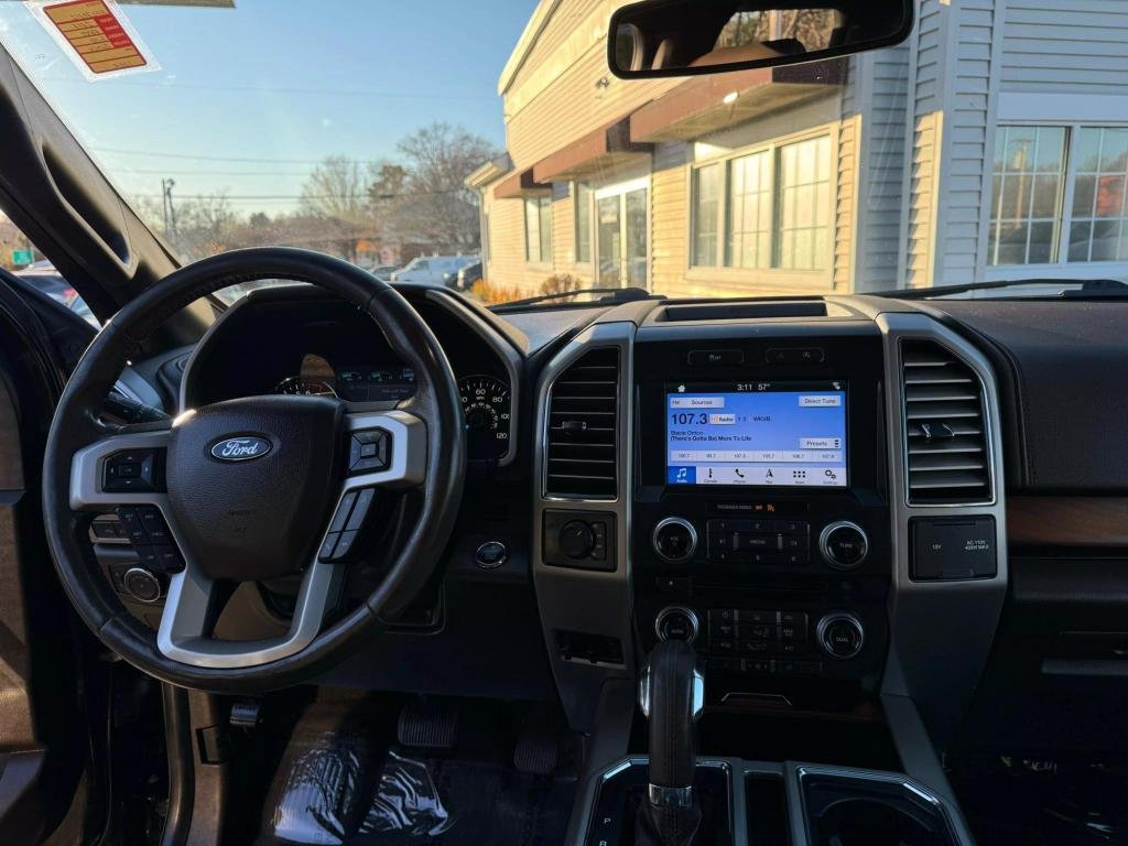 Ford F-150 com motor 3.5L V6 EcoBoost e transmissão automática. Com 120.412 milhas e pintura preta, oferece teto solar panorâmico, sistema de navegação, interior em couro e pacote de luxo King Ranch. Inclui tecnologia avançada como sistema de monitoramento de ponto cego e conectividade Bluetooth. Equipada com pacote de reboque, rodas de liga leve e design exclusivo, é uma caminhonete potente e elegante, ideal para trabalho e lazer.