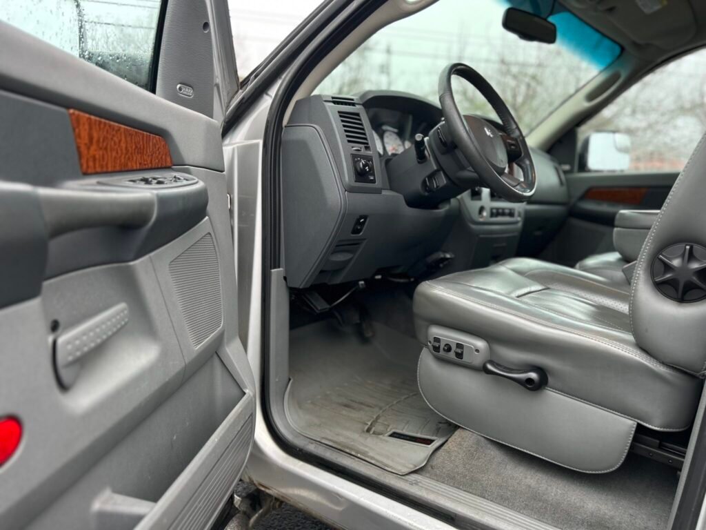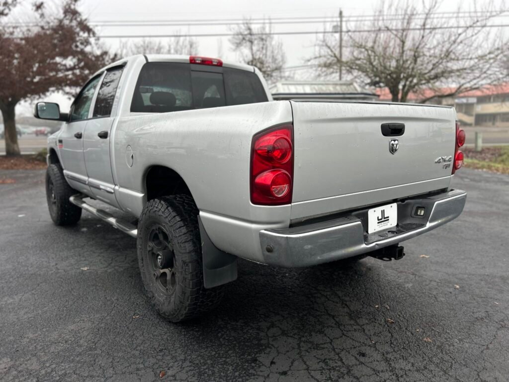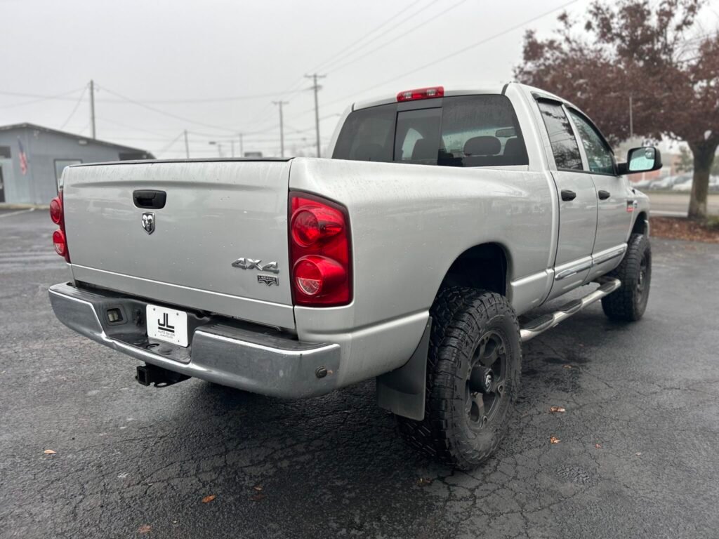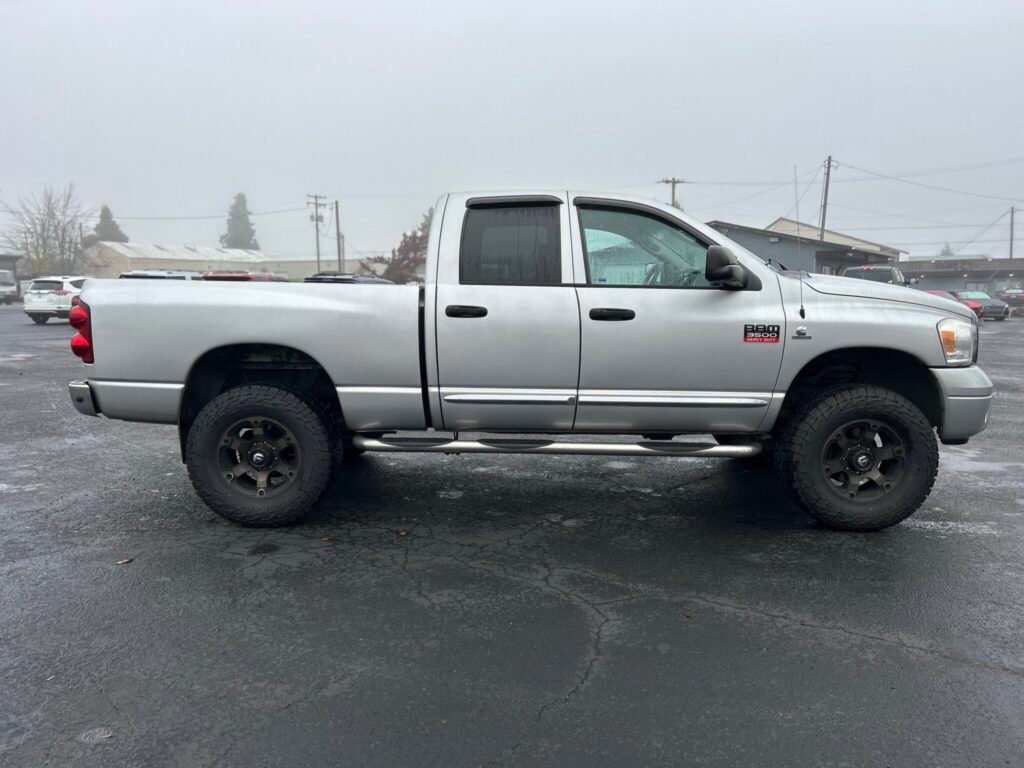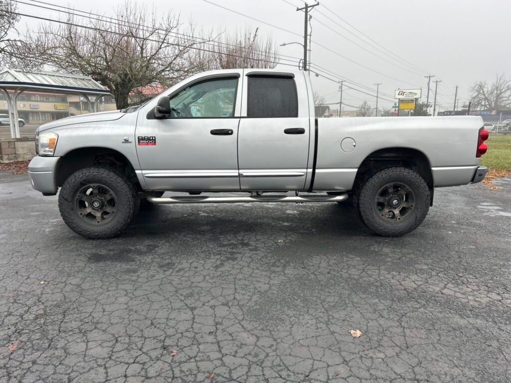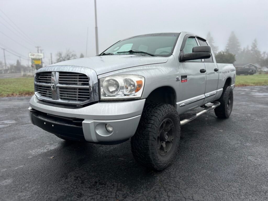 Ram 3500 Laramie 2007, 4×4 com motor 6,7L a diesel, título limpo e histórico de serviço impecável. Possui cabine quádrupla, comprimento da cama de 6 ¼ pés e interior bem conservado com desgaste mínimo. Entre os recursos estão assentos aquecidos, tapetes WeatherTech, bancos dianteiros elétricos e estéreo de reposição. Uma opção robusta e funcional para o dia a dia.